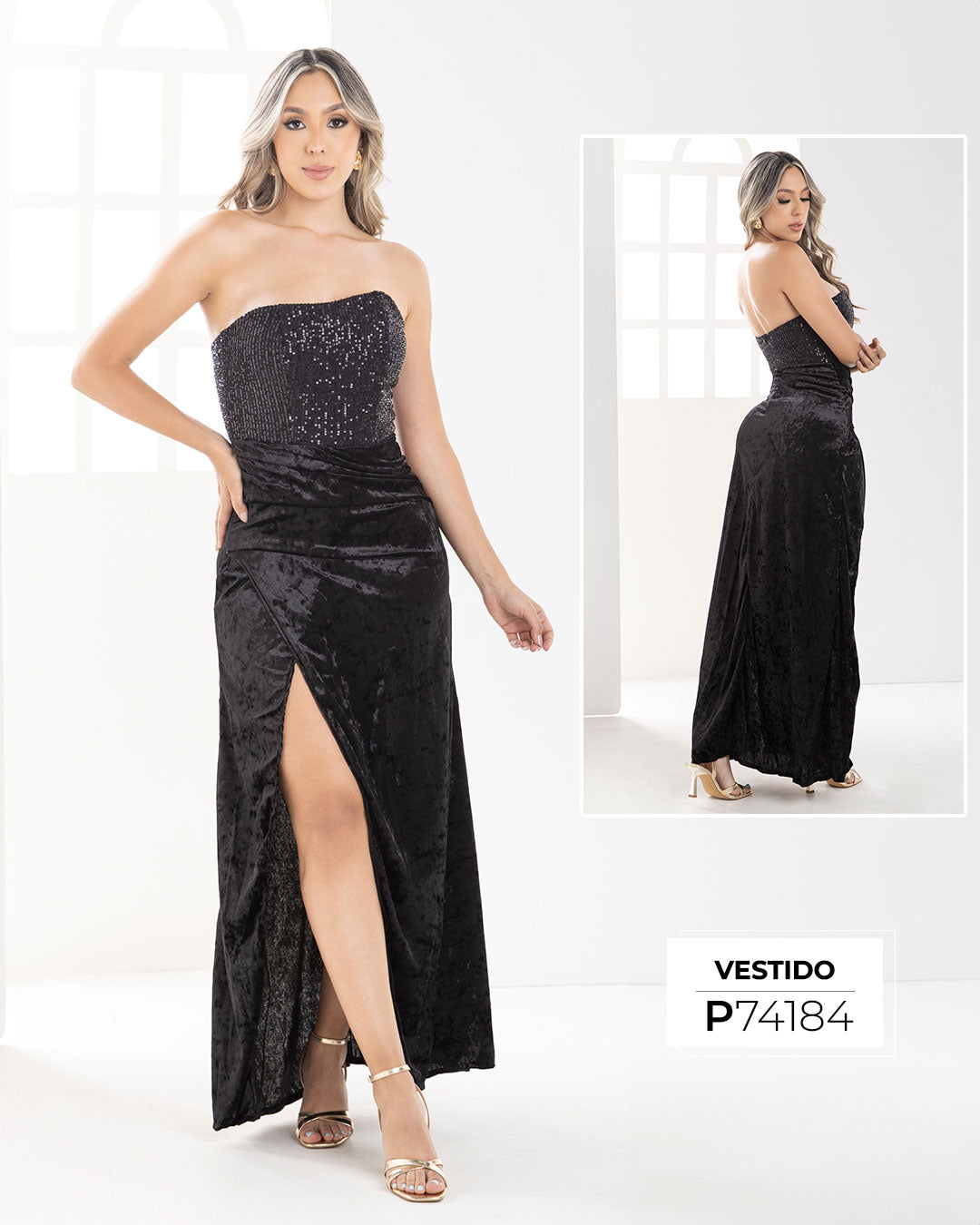 P74184 VESTIDO VELVETEEN LENTEJUELA NEGRO