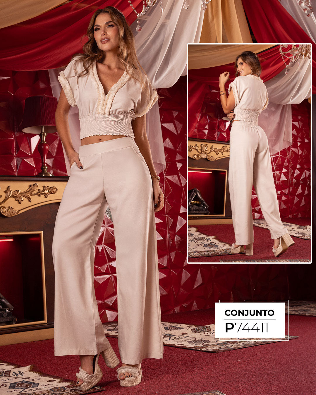 P74411 CONJUNTO LINO BEIGE