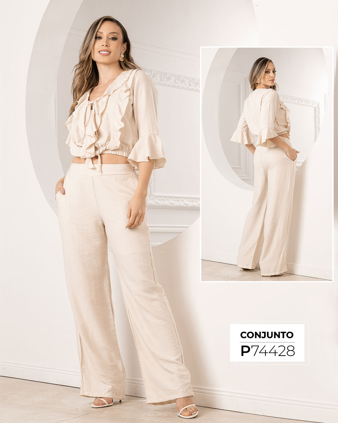 P74428 CONJUNTO LINOPOLIESTER CAMEL CLARO