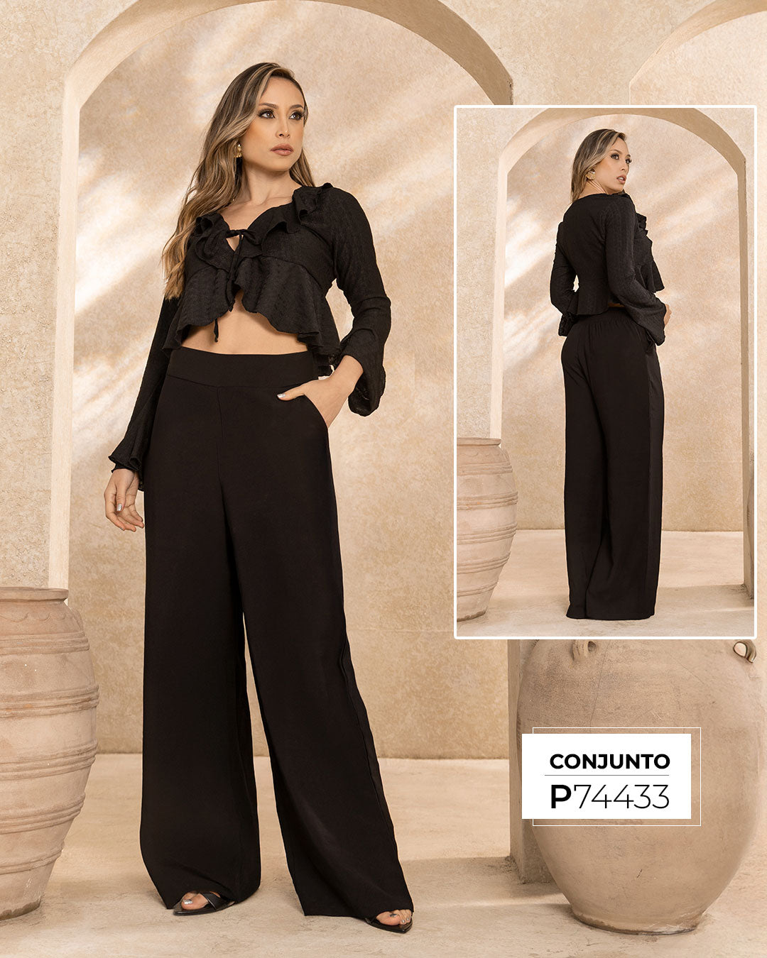 P74433 CONJUNTO TELA DE PUNTO CRAQUELADA NEGRO