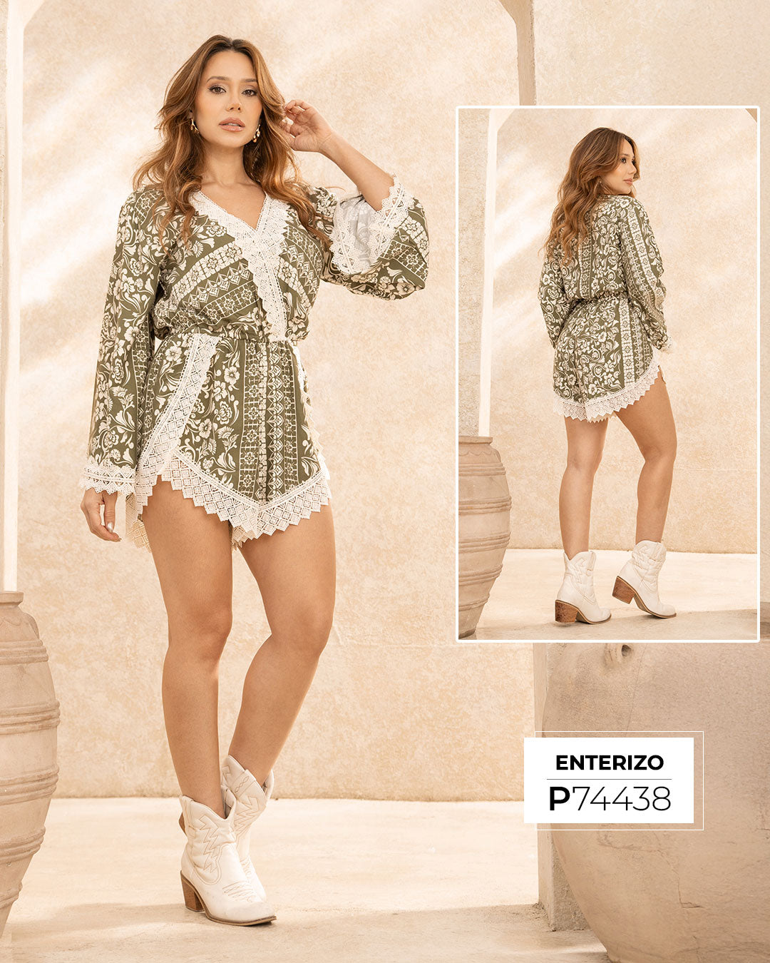 P74438 ENTERIZO LINO ESTAMPADO VERDE