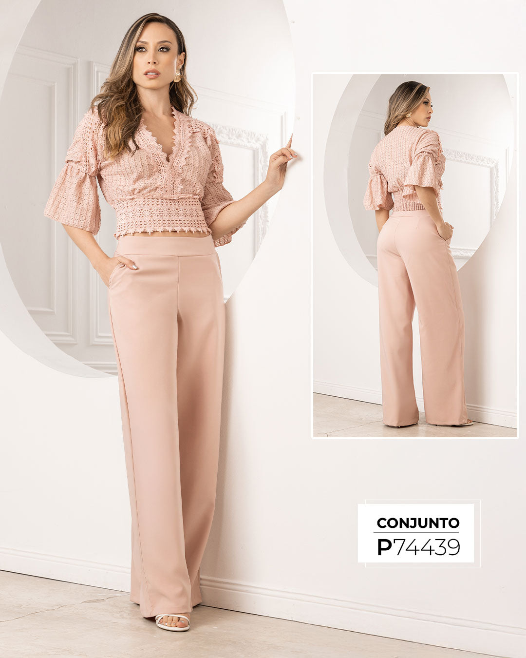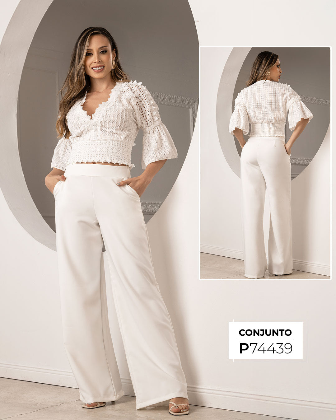 P74444 CONJUNTO CHIFON BORDADO BLANCO