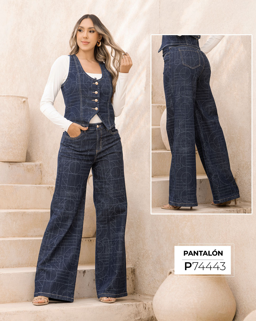P74443 PANTALÓN INDIGO GEOMETRIC AZUL