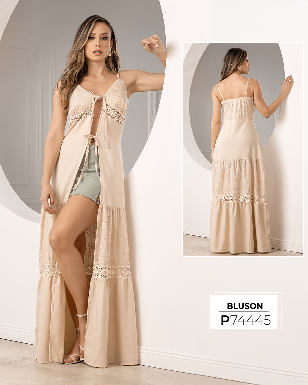 P74438 ENTERIZO LINO ESTAMPADO CAFE