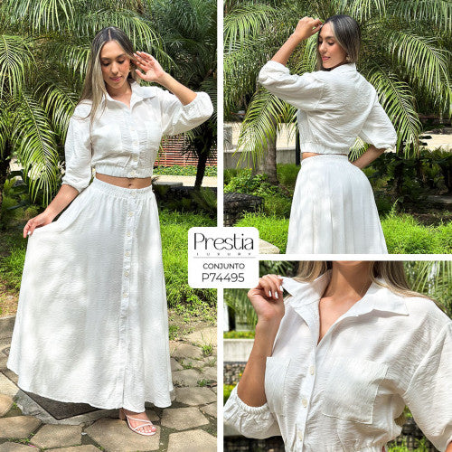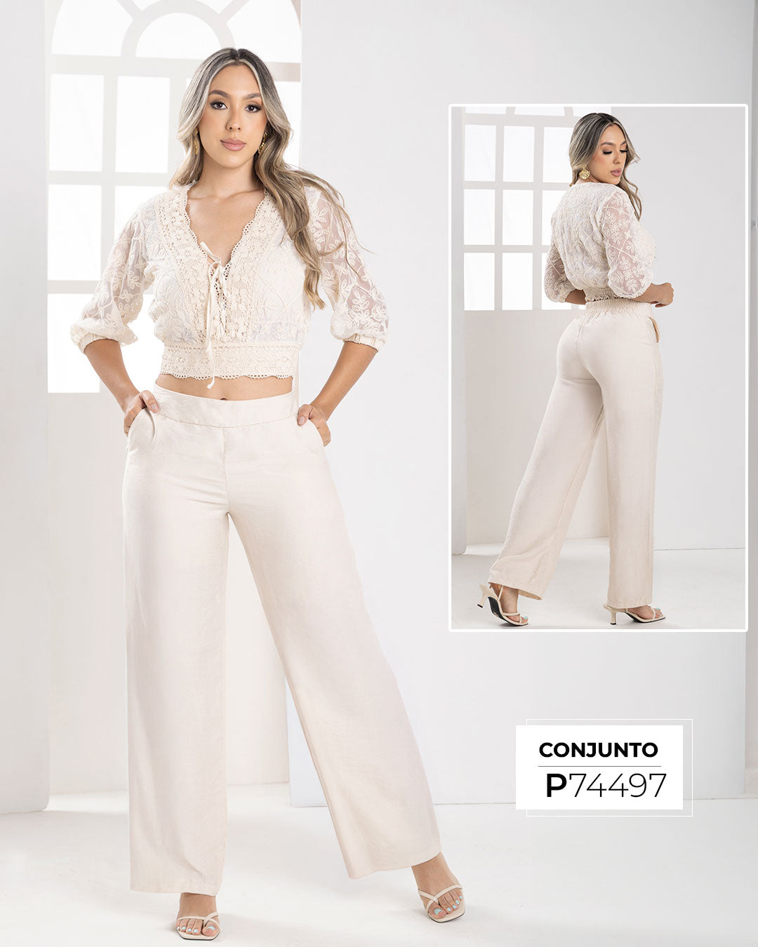 P74496 CONJUNTO MALLA BORDADA MANTEQUILLA