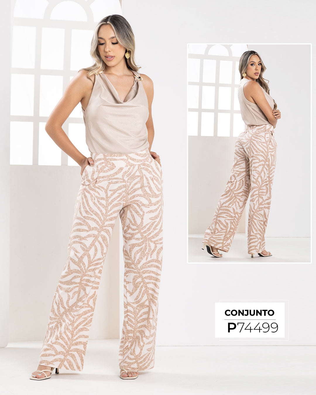 P74499 CONJUNTO TWILL ESTAMPADO CAMEL