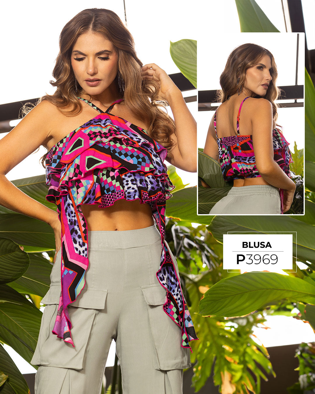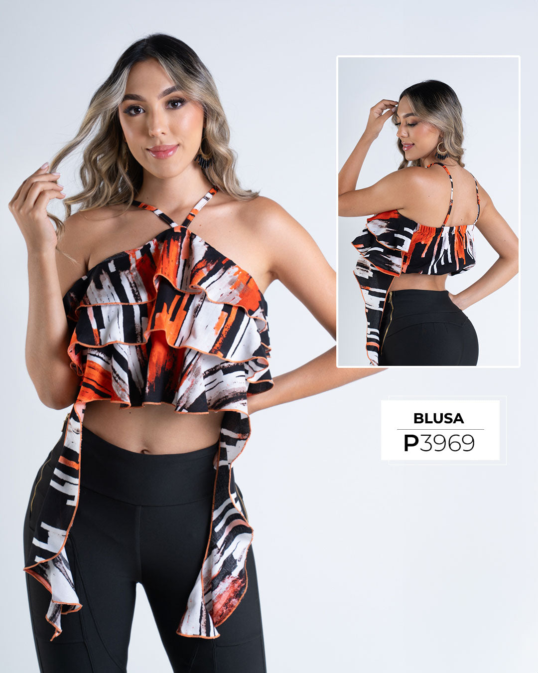 P3969 BLUSA CHALIS ESTAMPADO NARANJA