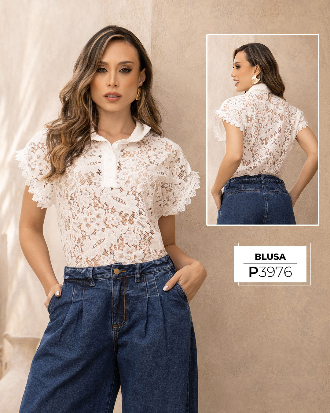 P3976 BLUSA BLONDA Y POPELINA MARFIL