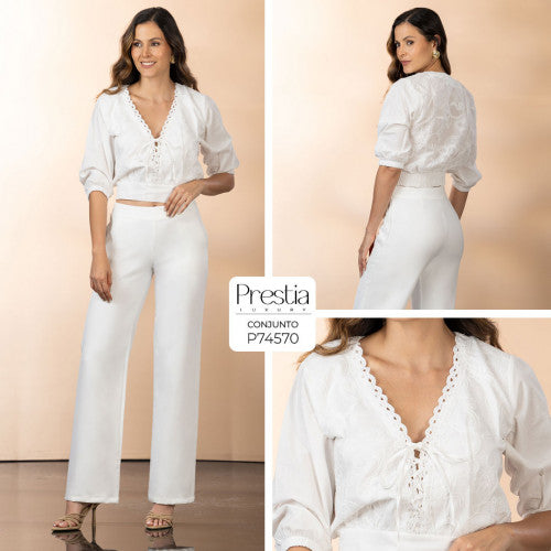P74583 CONJUNTO LINO BORDADO MARFIL