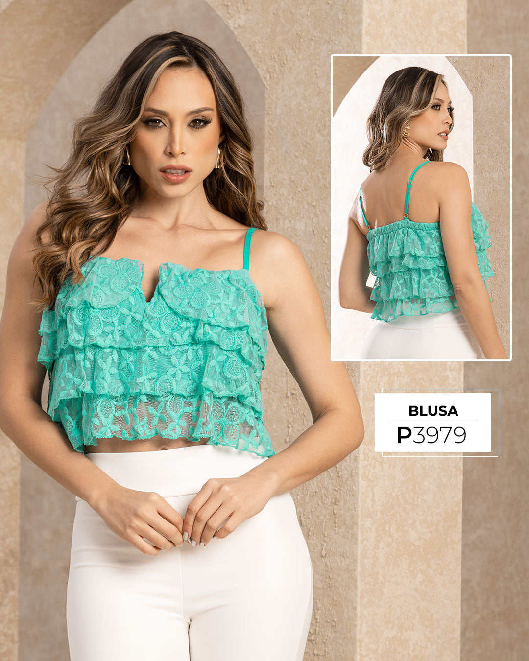 P3979 BLUSA TULL BORDADO VERDE JADE