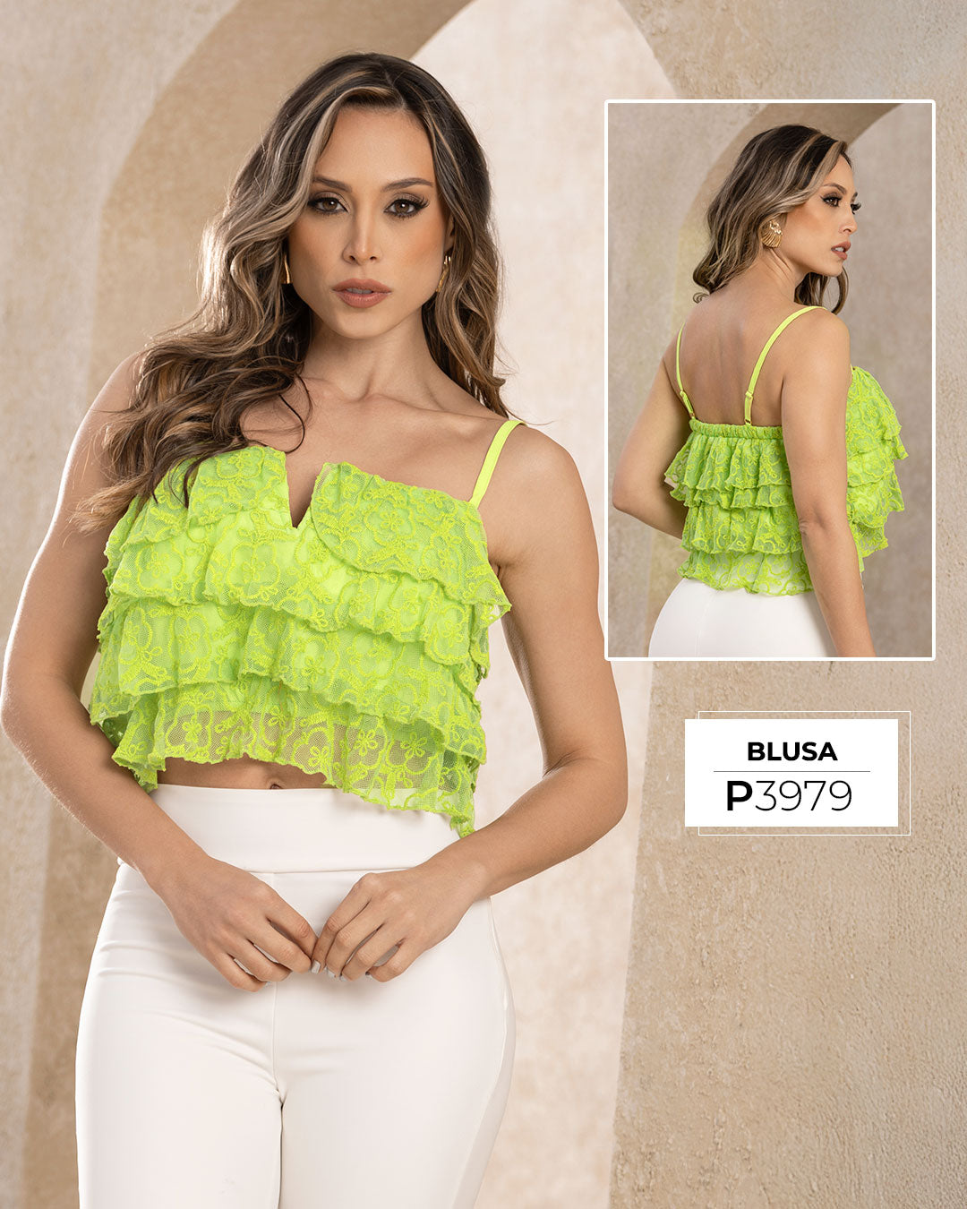 P3979 BLUSA TULL BORDADO VERDE LIMON