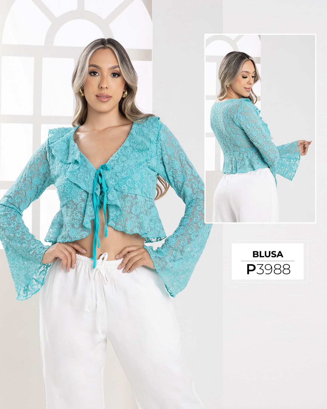P3988 BLUSA MALLA BORDADA VERDE MEDIO