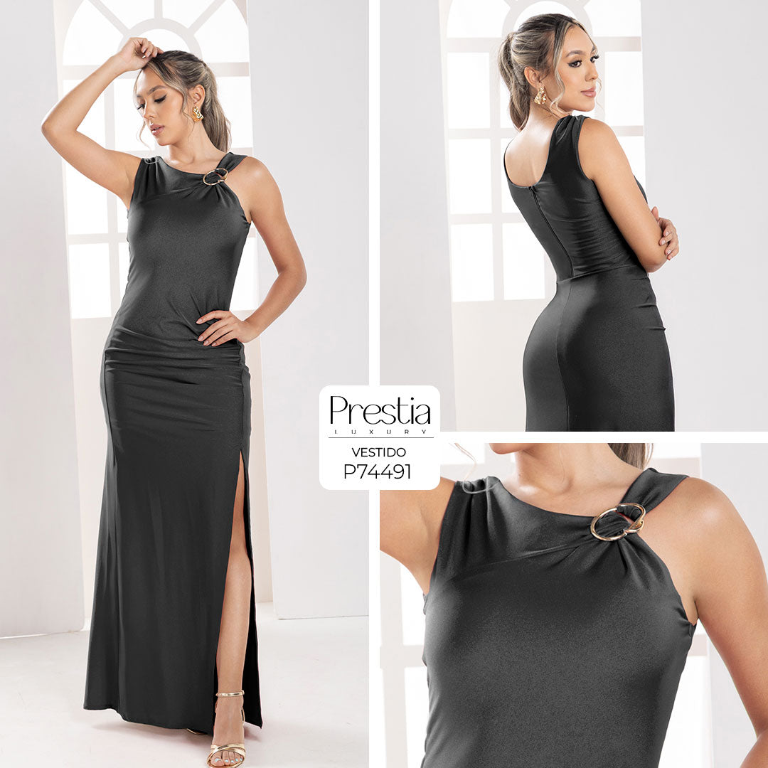 P74491 VESTIDO LICRA DESTELLANTE NEGRO